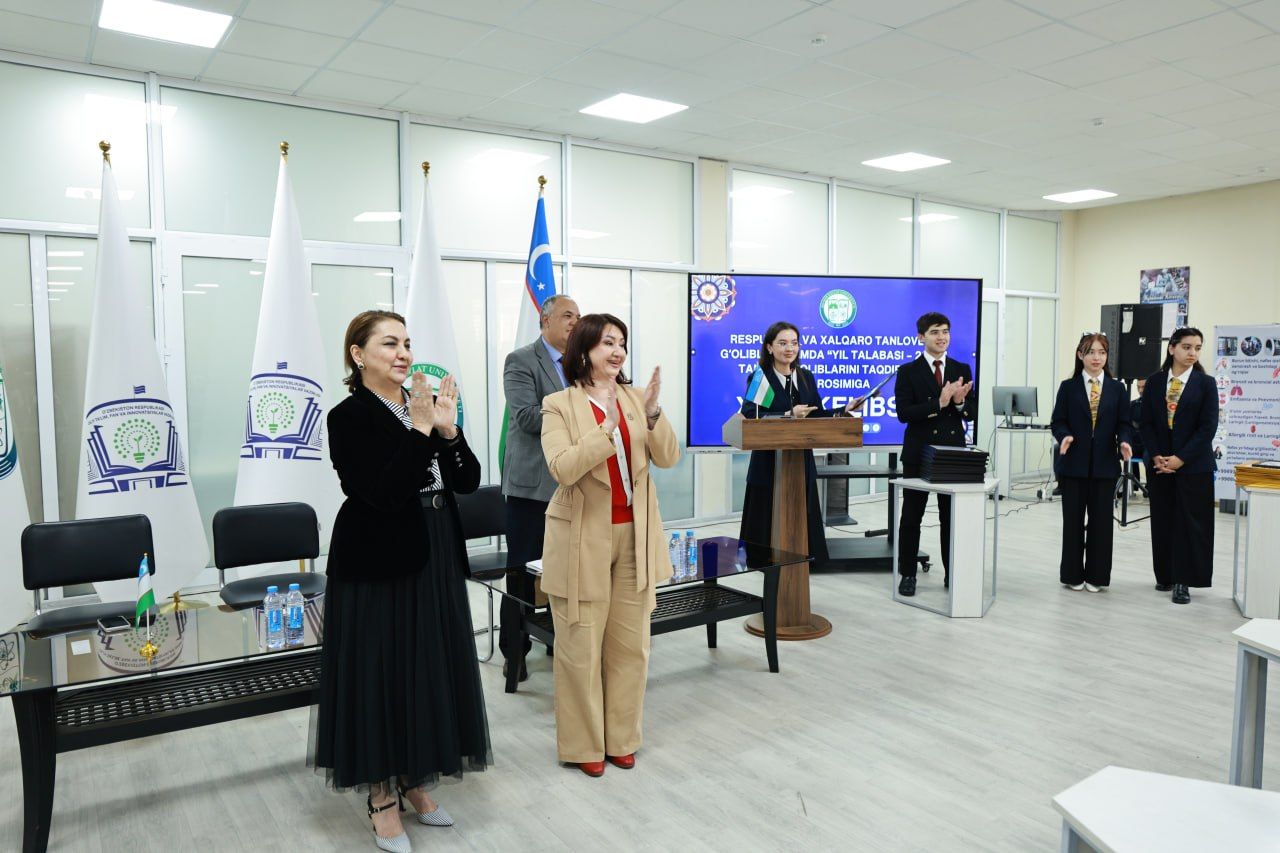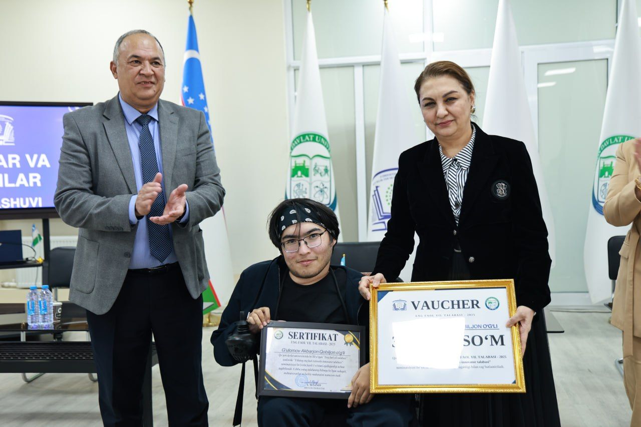 Shuningdek, yil davomida eng faol, tashabbuskor va fidoyi bo‘lgan 'Yil talabasi – 2025' tanlovining mutlaq g‘oliblari ham munosib e’tirof etildi. Talabalarning erishgan natijalari universitet rahbariyati tomonidan nafaqat ma’naviy, balki moddiy jihatdan ham rag‘batlantirildi. Bu rag‘bat — yangi marralar, yangi zafarlar sari tashlangan ulkan qadamdir. Bugungi e’tirof har bir talaba qalbida faxr tuyg‘usini uyg‘otib, ularni yanada yuksak cho‘qqilarni zabt etishga chorlaydi.
