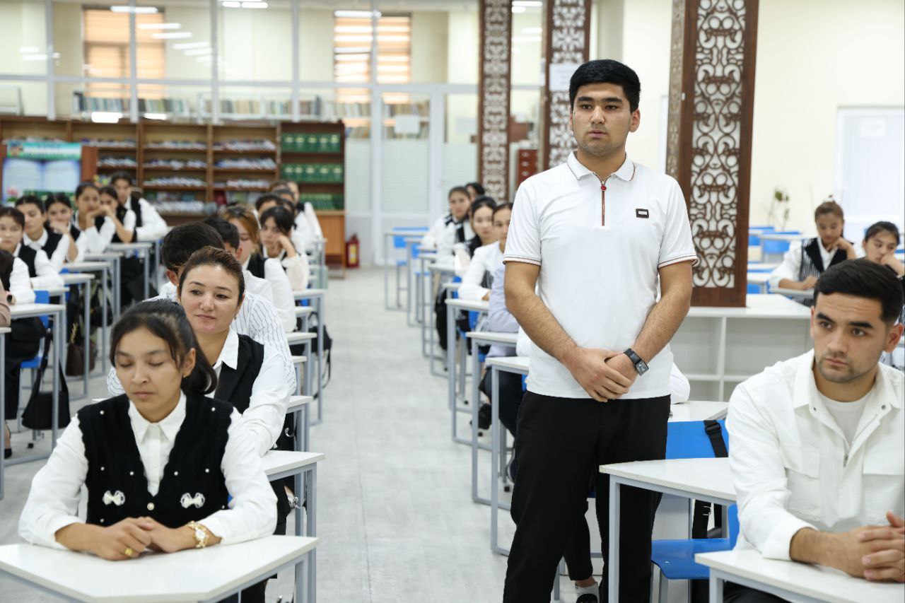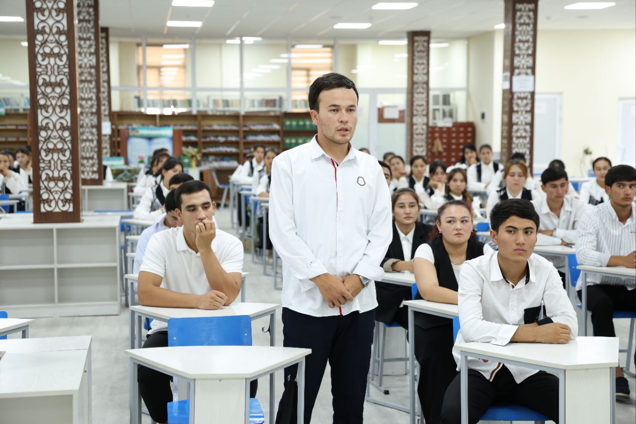 During the discussion, active students shared their achievements. Among them were M. Alijonov, winner of the Eurasian boxing tournament, G. Nosirova, prize-winner of the national stage of the intellectual game “Zakovat,” and D. Shavkatova, laureate of the Republican contest “Educator of the Year – 2025.” They spoke about their experiences with the audience.