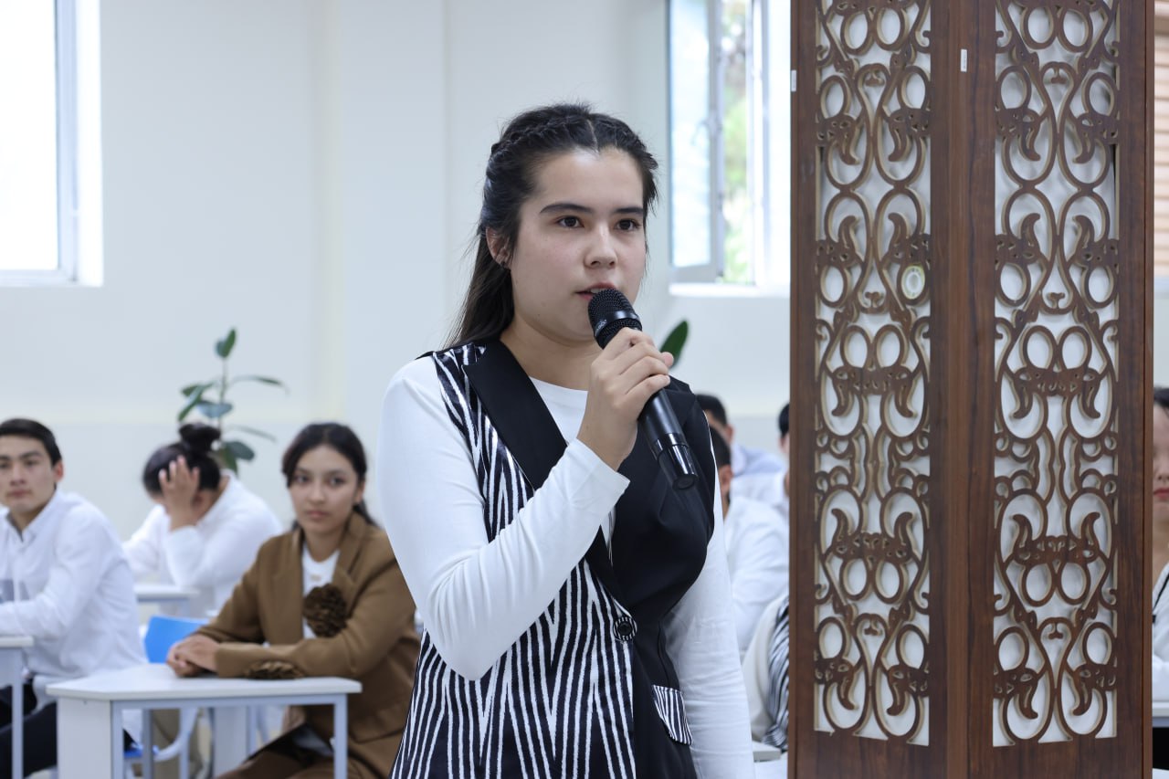 At the beginning of the meeting, the rector spoke about the large-scale reforms being carried out in the field of higher education under the direct leadership of the President of our country, their significance, and the opportunities being created for young people. She particularly emphasized that the ongoing changes in the education system are aimed at supporting students’ learning, research activities, and independent thinking.