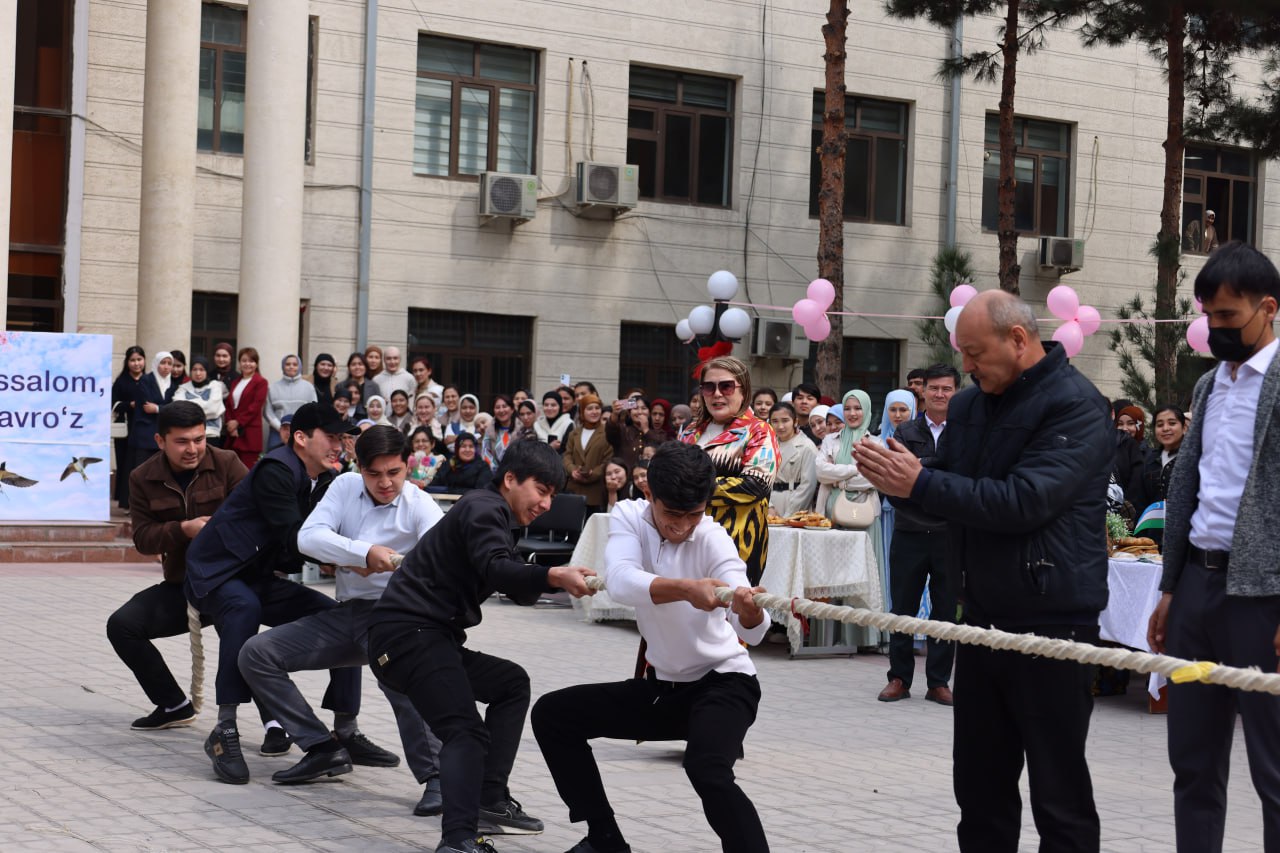 Bayram dasturi davomida milliy sport o‘yinlaridan namunalar namoyish etilib, talabalar o‘zlarining chaqqonligi va epchilligini ko‘rsatdilar. Ushbu chiqishlar tomoshabinlarga ko‘tarinki ruh bag‘ishlab, milliy an’analarimizga bo‘lgan hurmatni yanada oshirdi.